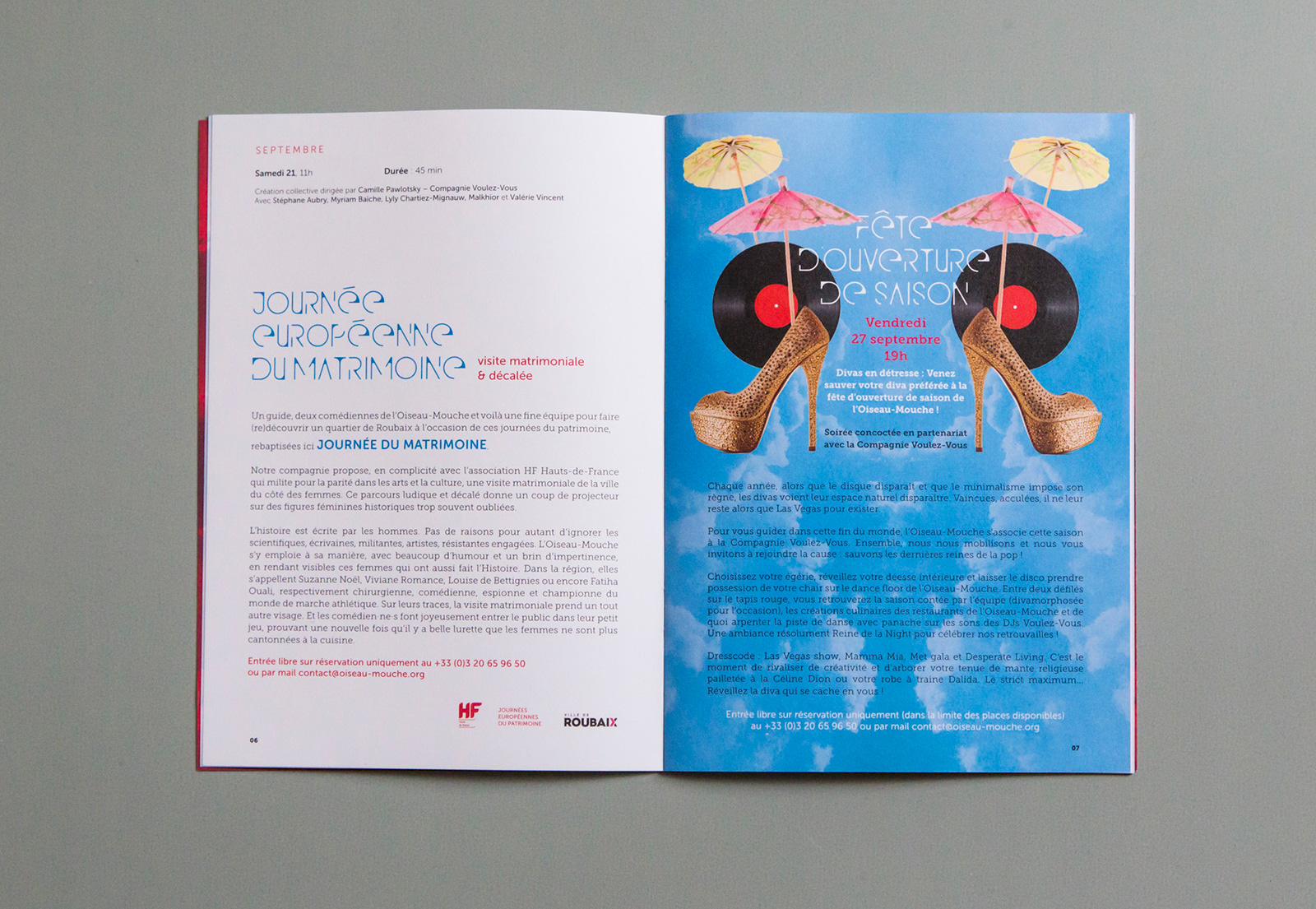 Creation of communication media for Compagnie de l'Oiseau-Mouche for the 2019-2020 season. Seasonal cover, post-card and brochure.