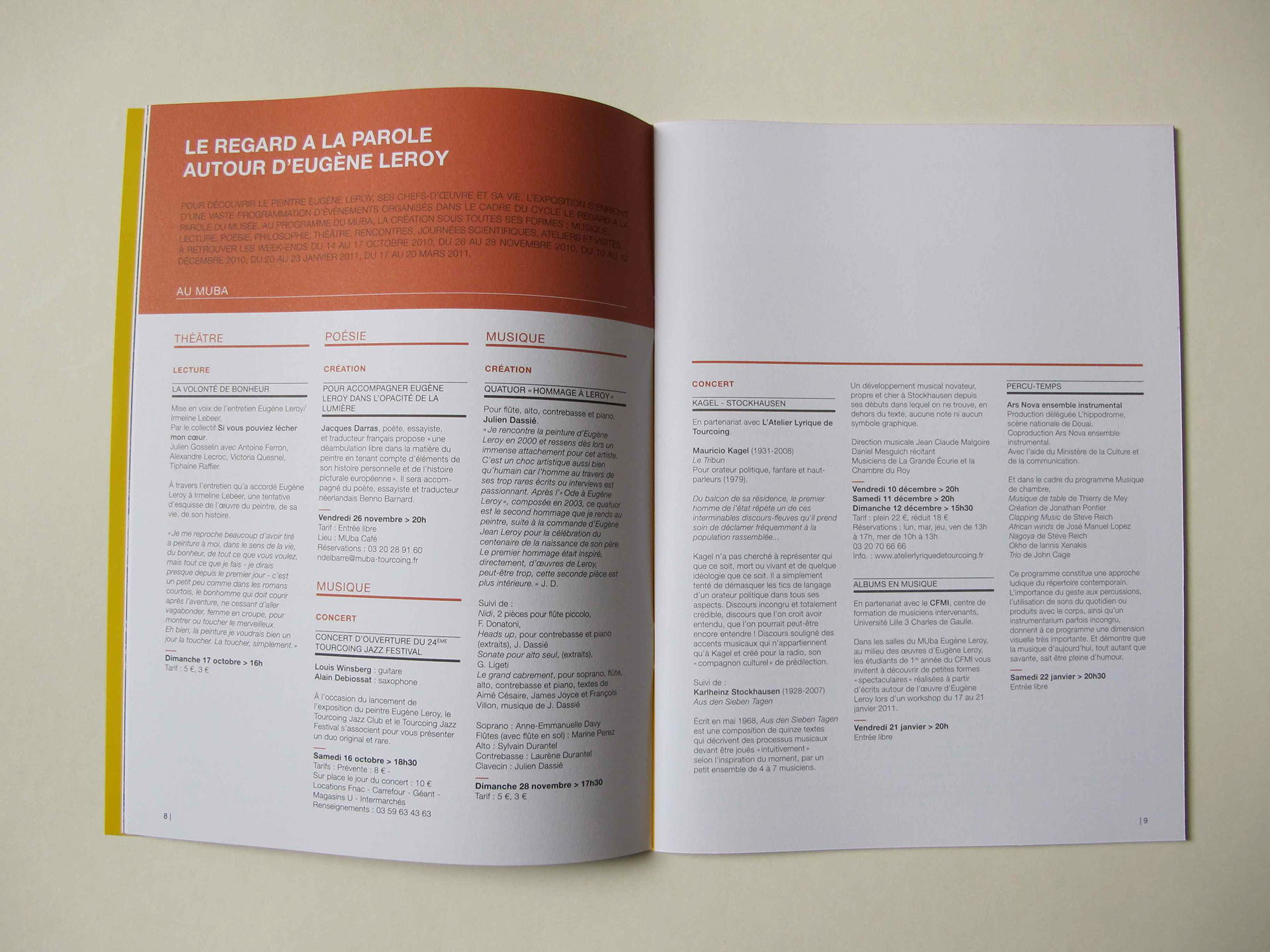 Création graphique et réalisation des programmes de saison et semestriel 2010-2011 du MUba (Musée des beaux-arts de Tourcoing).